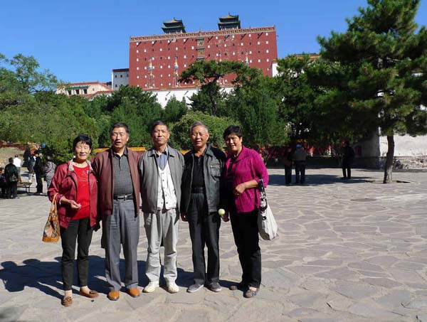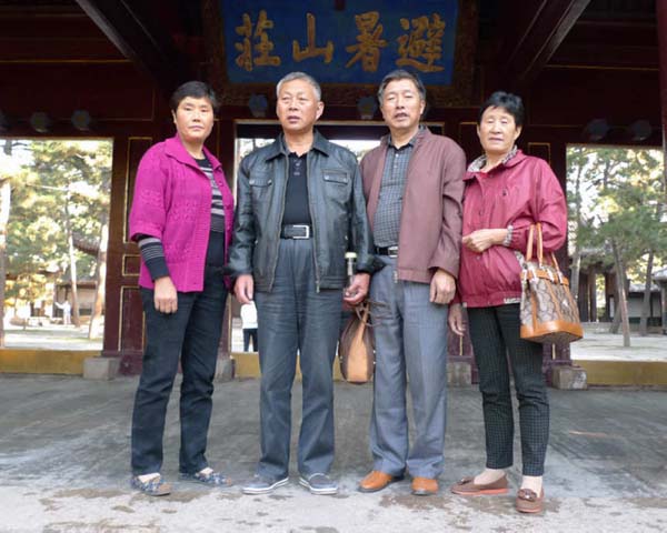 他们原先的计划,在石家庄与藁城访友之后,黄圣才去北京陪夫人看升旗逛逛故宫,老沈阳就在石家庄返程。我觉得他们来一趟不容易,不能光喝几场酒就走,应该适当游览一下河北名胜。我根据他们的实际情况,提议去承德看看避暑山庄。这是列入世界文化遗产名录的地方,全国就这么个地方,其他地方没有的。他们都没有看过这个景点,也都愿意去看看。但是,石家庄距离承德有600公里,他们人生地不熟,要去也有一定困难。所以我决定陪着两位哥哥嫂嫂一起走一遭。