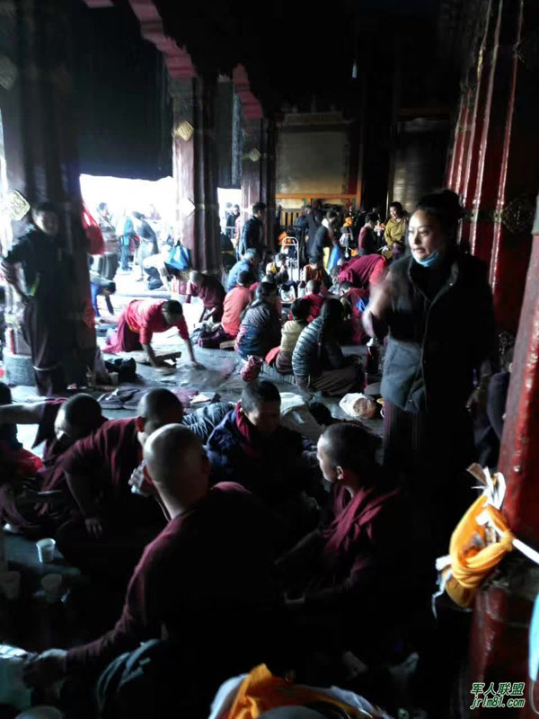宾馆离大昭寺不远,早上我们徒步前往。一出门,看到一个奇怪的现象,就像一条规则的江河,大街小巷的人流都汇集往一个方向,等我们接近大昭寺才意识到,千条江河归大海,目标都是大昭寺!