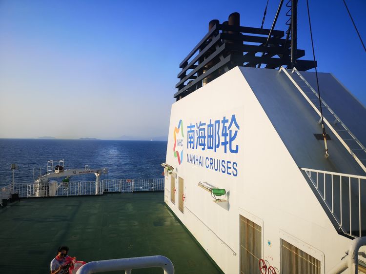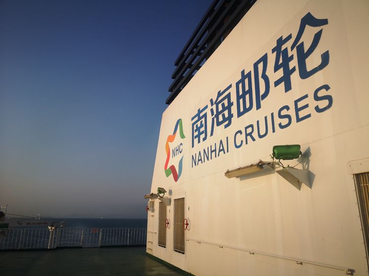 螺旋桨激起的波涛在浩瀚的大海上留下一道白色的浪痕,三亚岸边迷人风光已经远去,巨大的游轮在苍茫大海中迎风挺进,一排排的波涛此起彼伏很快被甩在后面。天色渐暗,邮轮也慢慢地被暮色笼罩。顶层甲板上开始放映电影《南海风云》,这部三十年前看过的电影现在好象已成了赴西沙的预科教材,虽然现在看演员和情节上都有点生硬和做作,但却是源自当年西沙海战的真实记录。