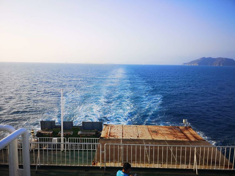 在邮轮后部远眺
