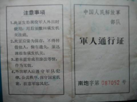 保存近四十年的《军人通行证》之一 Post By:2010/2/27 20:59:32