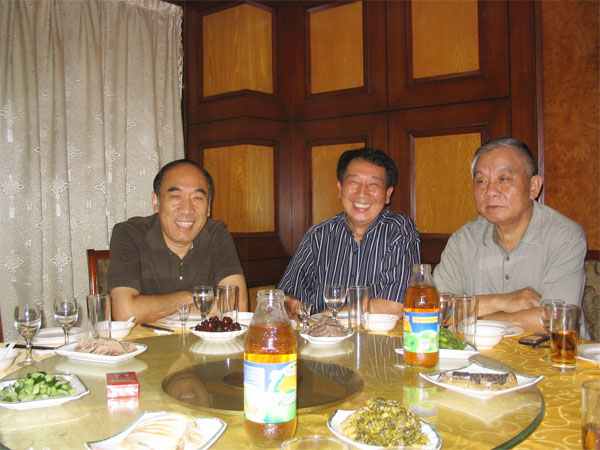 昨日傍晚我和珍妮一同赶往潇客下榻的宾馆,张处的夫人夏大姐早已在大厅担当接待迎宾,78岁的夏大姐风韵犹存精神矍铄,默默的为我们战友聚会作了很多的工作,张处有这样的贤内助真是让人感动。夏大姐告诉我们潇客的房号,我们直奔电梯,脚步没停稳,迎面撞见电梯里走出来林正教授,呵,一番大呼小喊后林正教授不无遗憾的说,因为时间重叠,今晚不能参加聚餐了,但他已经早早的来店和潇客一家开心的小聚了一会。林正匆匆告别, 遗憾,今晚聚会少了一帅哥!