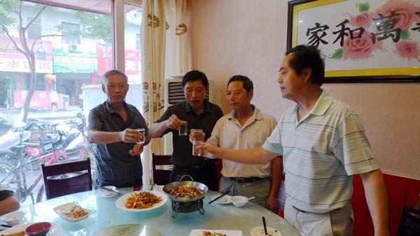 来自四个省,五个老战友,相聚寿县西街的鲍家饭店。30多年没有机会见面,那天终得梦圆。一个个激动不已,一杯杯畅饮不止。动情的场景,还是让昆仑老弟来写吧。