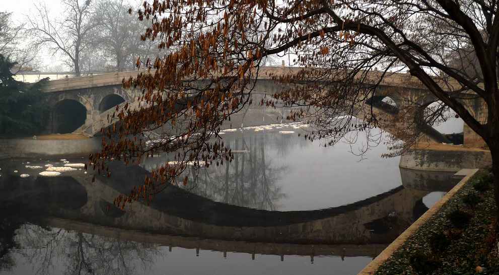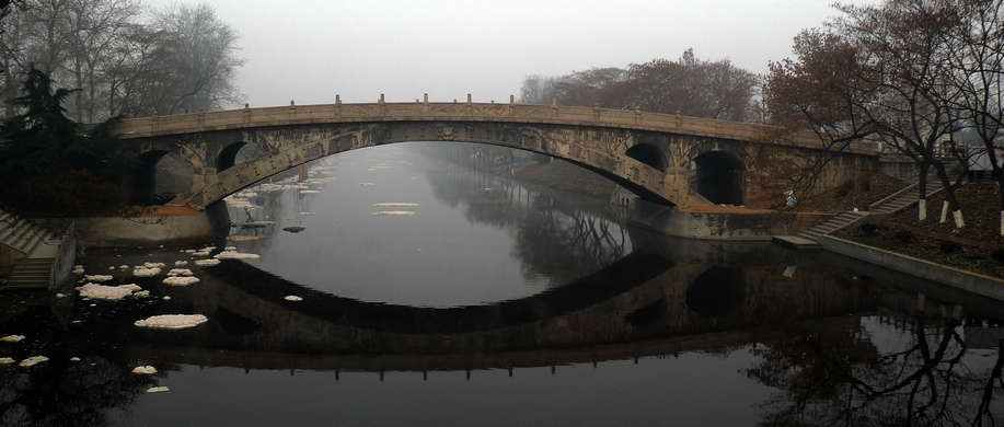 在赵州桥,看到河中漂浮着的一块一块的白色泡沫状污染物,我与三秋兄弟都非常难受。这么重要的历史旧迹,竟然连起码的环境保护都做不到。云起为当地政府汗颜。