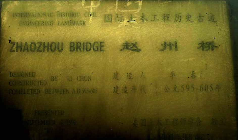 赵州桥单就外貌看,就是一座很普通的石拱桥。但是他在中国乃至世界桥梁史的地位,非常重要。能够证明他的重要程度的是一块不怎么引人注意的铜质铭牌。据云起所知,这样的铭牌在全世界只有13块。中国有两块,另一块是万里长城。1991年9月美国土木工程师学会选定中国赵州桥为最悠久的“国际历史土木工程里程碑”。这是美国土木工程师学会在世界范围内开展选认重大土木工程历史遗产的活动之一。据了解,该学会对国际历史土木工程里程碑的评选标准极为严格,要求其本身必须是世界最辉煌的土木工程范例。中国赵州桥是被美国土木工程师学会选定的第13个国际历史土木工程里程碑。去年马立来河北时,我们也是有小半天时间,也是先去看赵州桥,但是因为堵车,时间来不及等,只看了看柏林禅寺。那次马立非常遗憾。