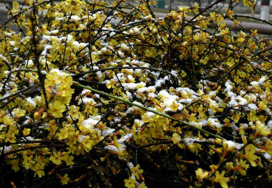 明天虽然就是春分了,但是在石家庄这个地方现在还是气候意义上的冬天。公园里除了长青的松柏竹之类,只有黄色的迎春花开了,刚刚返青的小草又被蒙上了一层薄薄的白雪。天是灰蒙蒙的天,地是湿漉漉的地,唯一令人享受的是清新湿润的空气。这种空气在石家庄市难得一见的。平时,我们在这里整天呼吸的空气中充满mp2,这就算良好天气了。如果遇到雾霾与沙尘天气,根本不敢到室外活动。