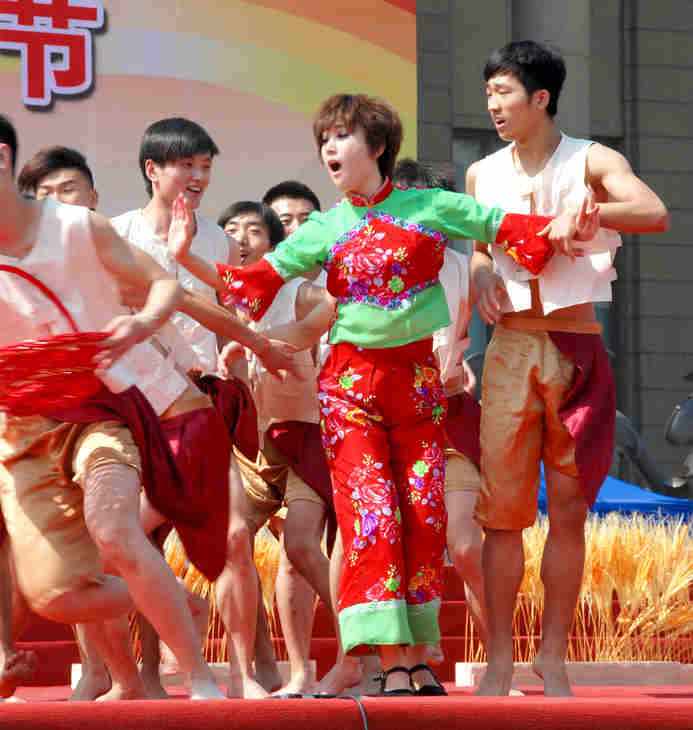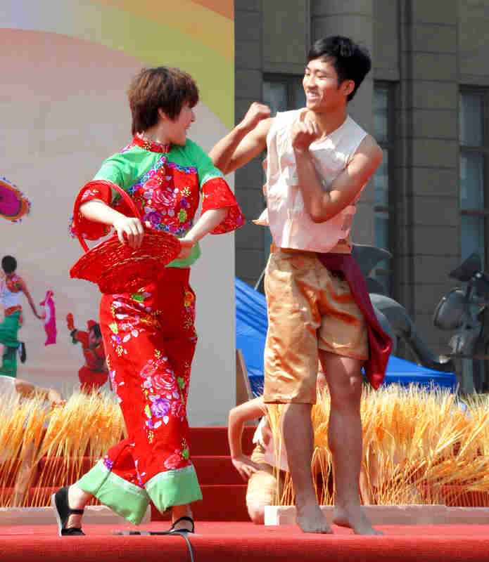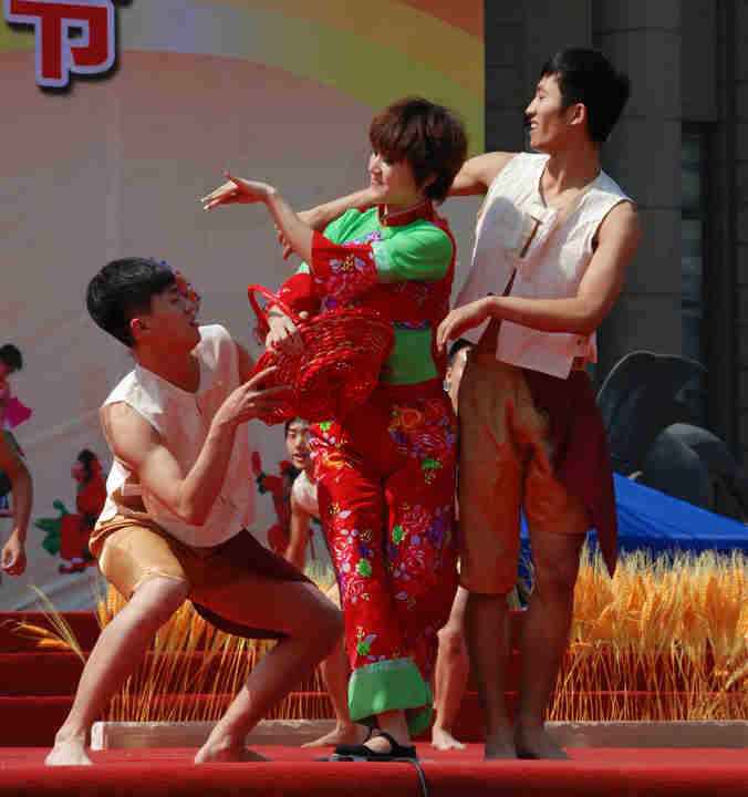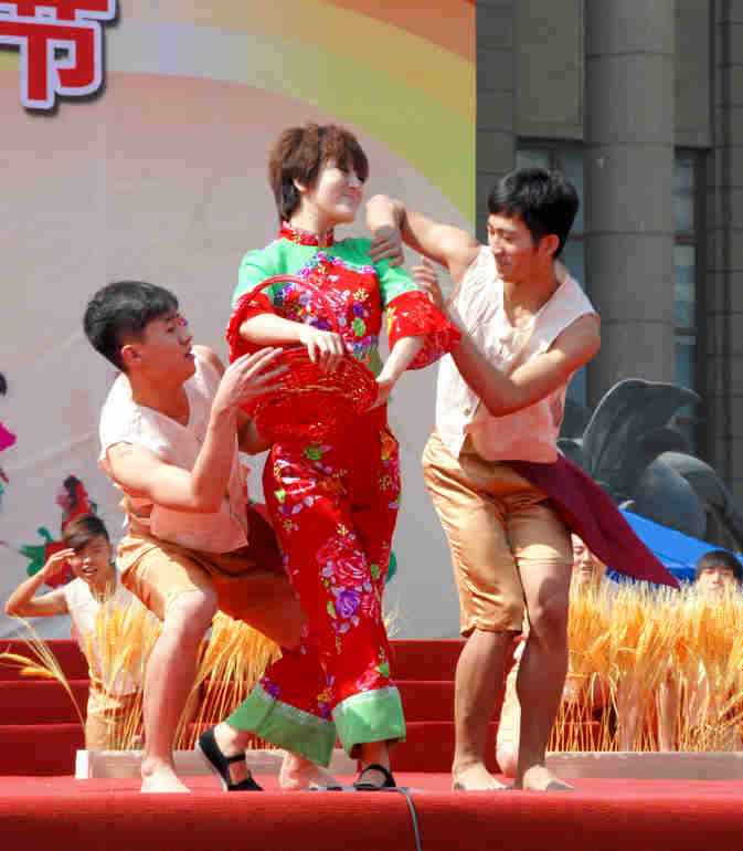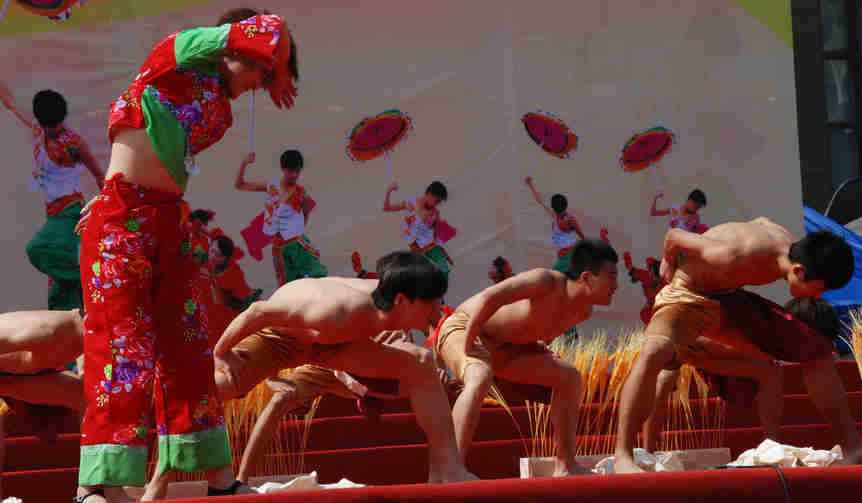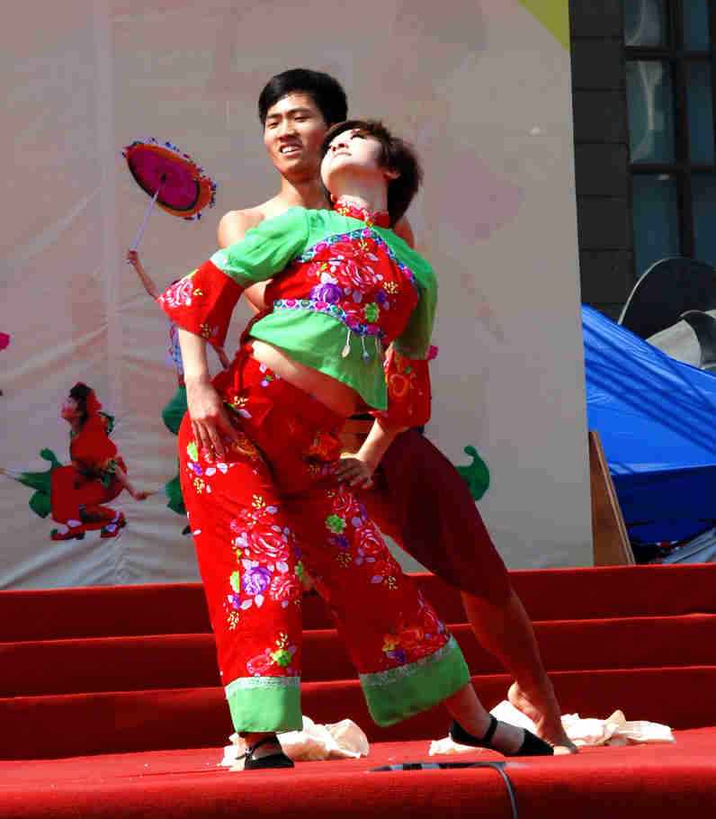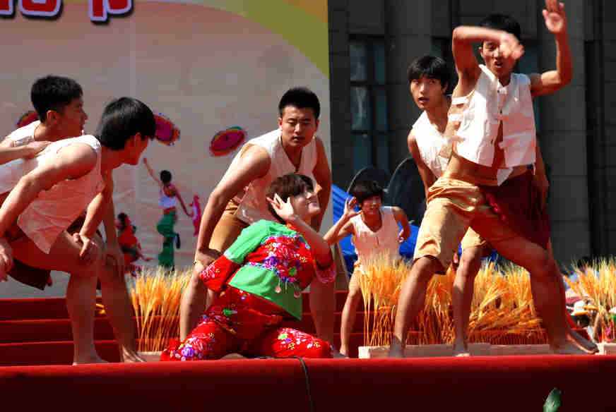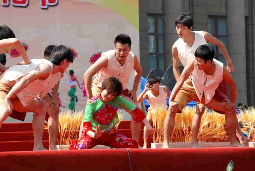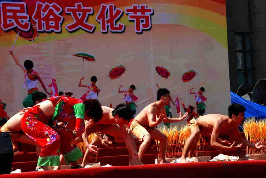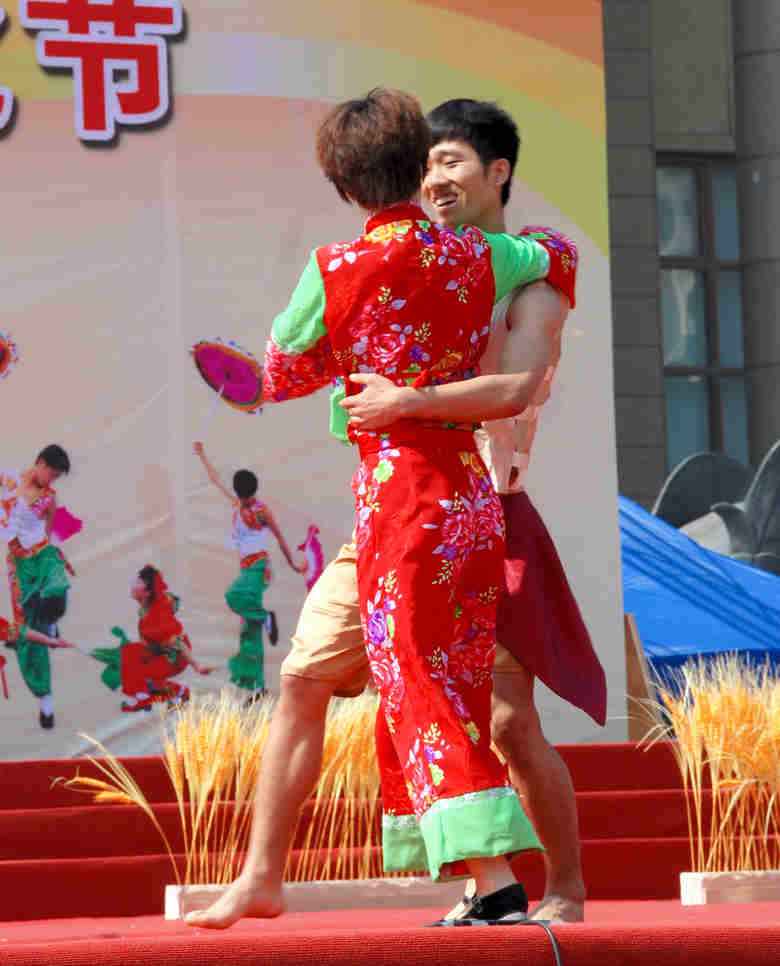 在昨天的展演中,云起第一次看到了一个民间的舞蹈---打花膀。这个舞蹈是在衡水地区武强县及周边市县广为流传的一种群众自娱自乐的古老民间舞蹈,打花膀均为男性表演,表演时赤臂赤脚,只穿短裤。