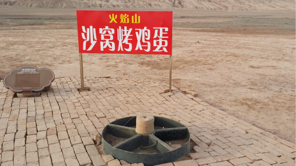 对于火焰山的传说有两个版本;其一当年美猴王齐天大圣孙悟空大闹天宫,仓卒之间,一脚蹬倒了太上老君炼丹的八卦炉,有几块火炭,从天而降,恰好落在吐鲁番,就形成了火焰山。山本来是烈火熊熊,孙悟空用芭蕉扇,三下扇灭了大火,冷却后才成了今天这般模样。