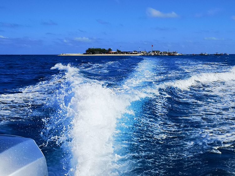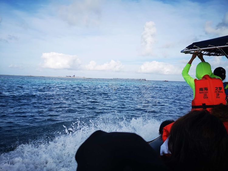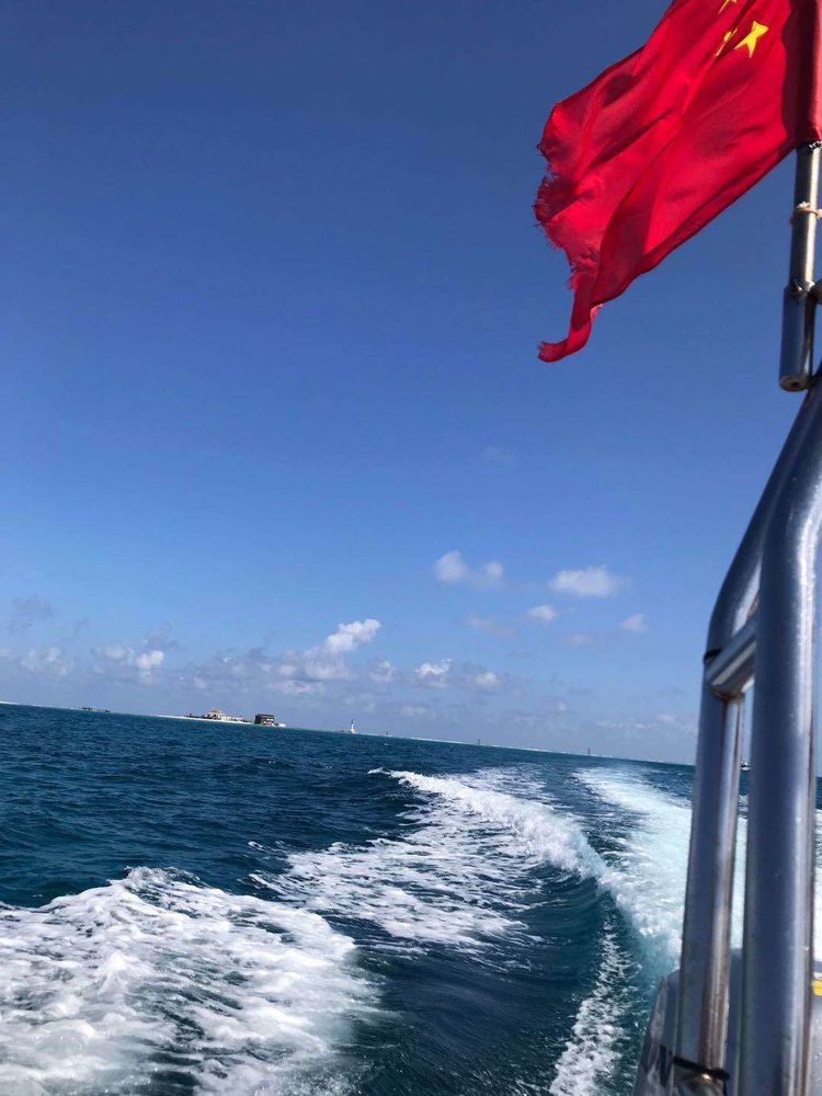 时近黄昏,落日把余晖洒向海面,变幻成大片鱼鳞状的光斑,岛上气温也在慢慢下降,人们开始排队登上冲锋艇返回母船。许多人还恋恋不舍地在沙滩上再捡几个贝壳,斜依着小船再照几张照片,美丽西沙的旖旎风光真令人沉醉。