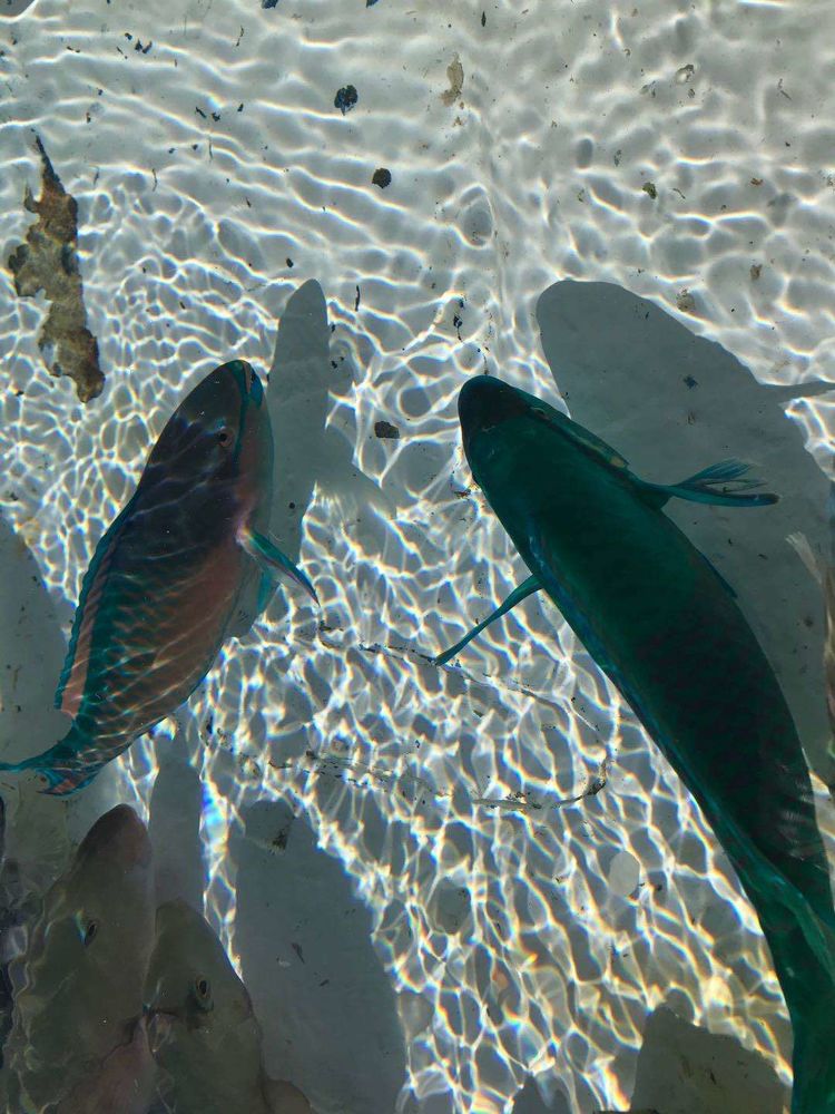 玻璃船在水面上缓缓行驶,透过玻璃还可看到身披不同颜色和图案的小鱼在珊瑚丛中游动穿梭,体态轻盈,怡然自得,仿佛电影画面一般呈现在人面前。