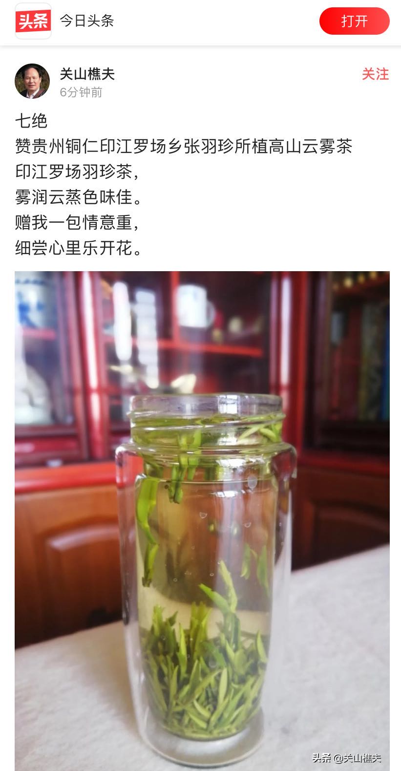 关山樵夫七绝赞贵州铜仁印江罗场乡张羽珍所植高山云雾茶 Post By:2020/4/22 10:00:12