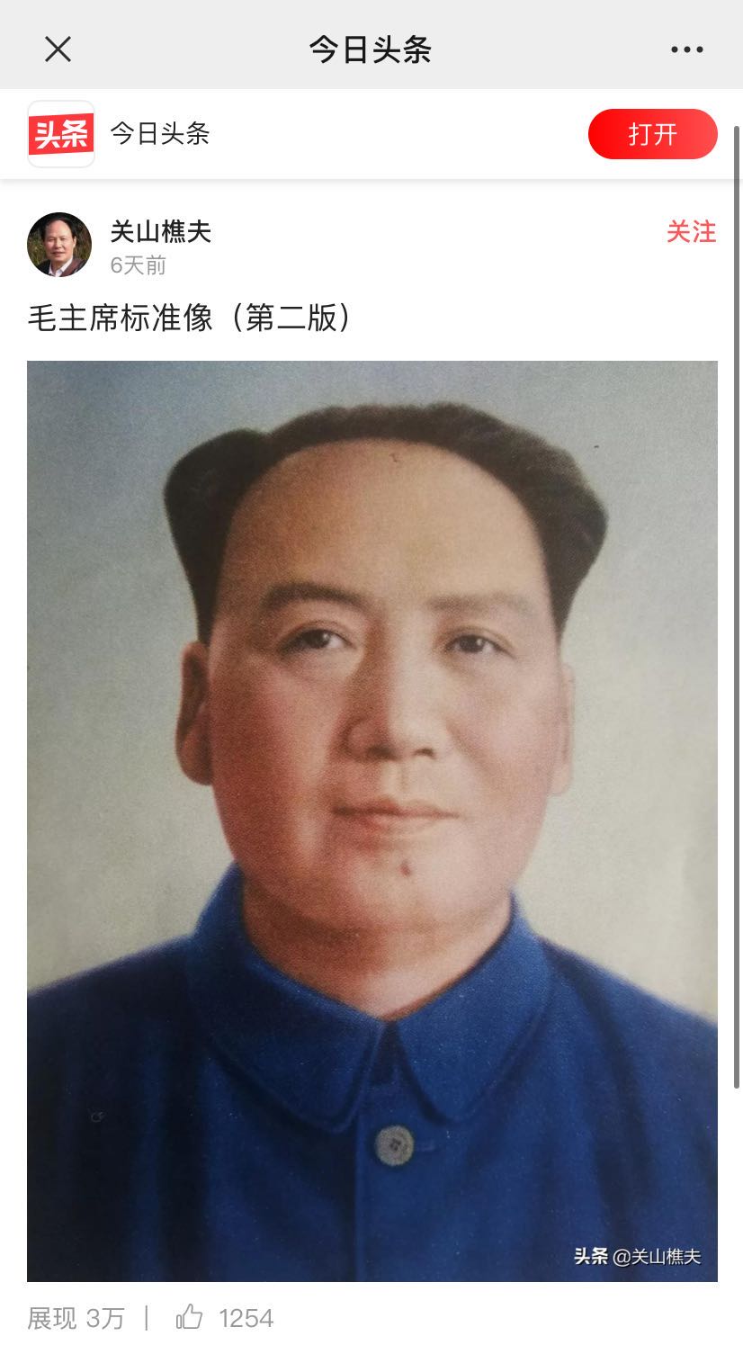 关山樵夫今日头条:毛主席标准像第二版 Post By:2020/6/14 11:15:02